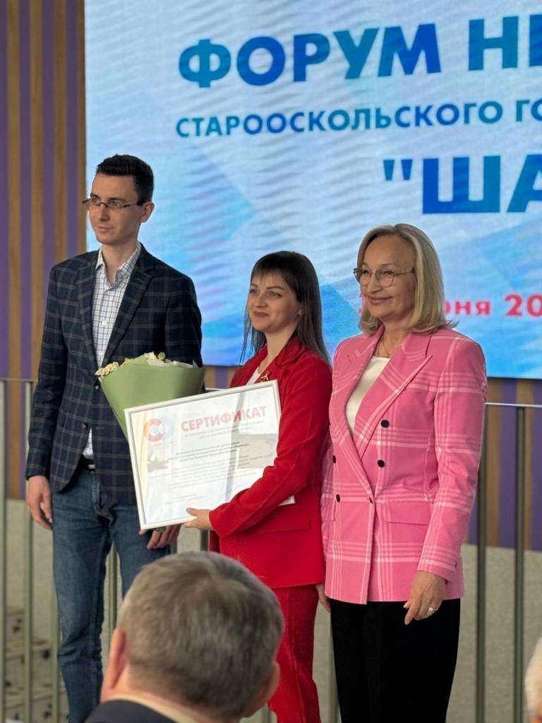 В рамках форума руководителям НКО и ресурсных центров были вручены сертификаты на реализацию социально-значимых проектов, в число которых вошла инициатива АНО ЦЕНТР «ПАРТНЁР» "Проектный офис: курс на креативное проектирование", ставшая победителем конкурсного отбора по предоставлению субсидии социально ориентрованным некоммерческим организациям Старооскольского городского округа.